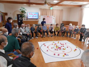 デイサービスセンターひだまり 運動会(R7.10) 2025.11.05 デイサービスセンターひだまり 長かった夏もいよいよ終わり、過ごしやすい季節がやってきましたね。 今月は焼き芋争奪!運動会を開催しました。 曜日ごとにチームとなり、点数を競います。 優勝、準優勝のチームには立派に育った焼き芋が送られます。 白熱した戦いが繰り広げられました。 敬老会(R7.9) 前の記事 新着のお知らせ 敬老会(R7.9) 2025.09.30 10/9(木)地域就職相談会に参加します! 2025.09.09 ひだまり夏祭り(R7.8) 2025.08.26
